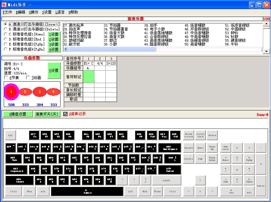 11、乐器组C:乐器也可以自己选择(除A、B两组固定外,其它各组内乐器均可自己定义,但每组最多支持15个乐器)。